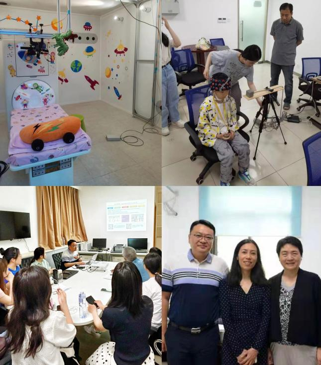 调研团走访北京语言大学语言康复学院,院长高利群教授向调研小组介绍了北语听力-语言障碍专业的开设经验与考量,双方就特殊教育类人才的培养与就业,语言障碍相关科学研究和社会服务等话题进行了深入交流和讨论,随后调研小组参观了北语脑科学与类脑智能中心和语言障碍与脑科学MEG实验室。 23日下午,调研小组来到北京师范大学,与北师大人工智能学院邬霞教授、心理学部甄宗雷副教授、认知神经科学与学习国家重点实验室卢春明教授等就语言脑科学与语言类脑科学的发展进行了深入而热烈的交流,随后调研小组参观了朱朝喆教授课题组实验室,学习并熟练掌握经颅脑成像与神经调控双导航系统的使用方法。