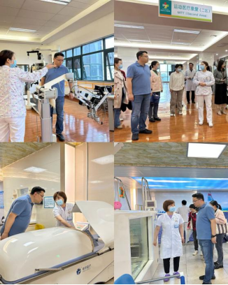 西安工会医院·西安康复医院是一所集医疗、康复、养老、健康管理为一体的全新型三级康复医院。在田晔院长和康复评定治疗团队负责人的陪同下,实验室一行先后对西安工会医院·西安康复医院运动医疗康复区、运动疗法区(徒手)、上下肢机器人治疗区、运动疗法区、肢体综合训练区以及温泉水疗中心进行实地参观。医院讲解人员详细介绍了运动康复仪器的研发原理和治疗功效,参观人员感受到了科学规范、细致周道的医疗管理模式,以及人性化、人文化的养老康复理念。