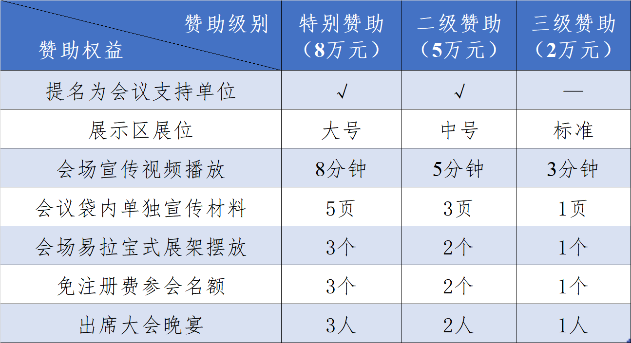 本次研讨会将提供多样化的赞助级别和权益,并愿意依据各企业的具体需求量身定制独特的赞助方案,具体如下: