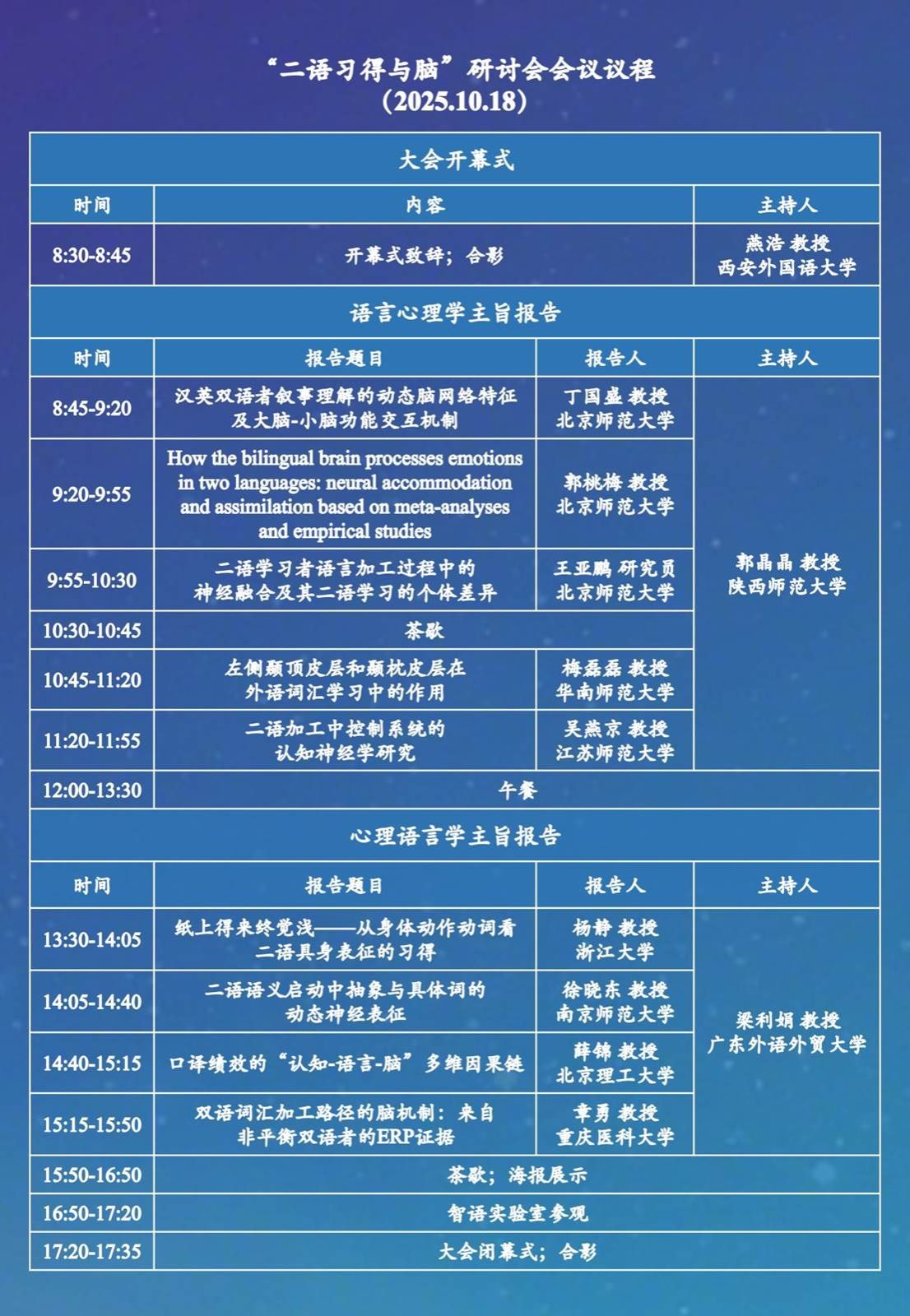 我们诚邀国内外二语习得脑科学领域的研究人员和在校学生投稿参与海报宣讲!