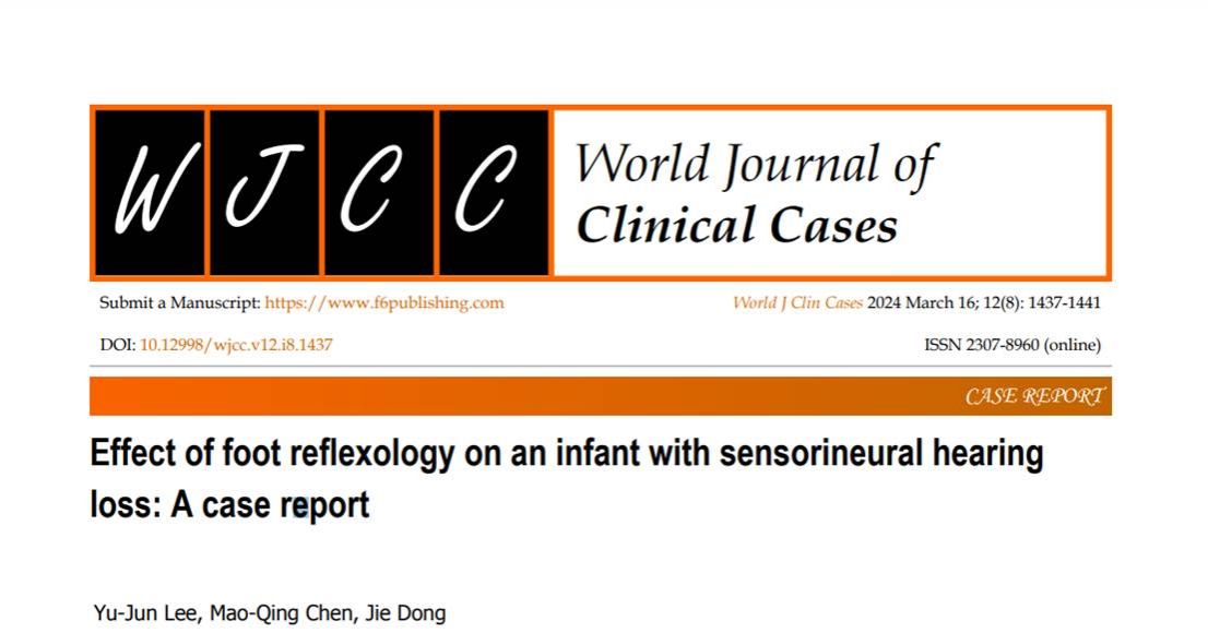 董洁联合四川北方医科大学附属医院团队在World Journal of Clinical Cases期刊上发表了题为 “Effect of foot reflexology on an infant with sensorineural hearing loss: A case report”的研究论文。