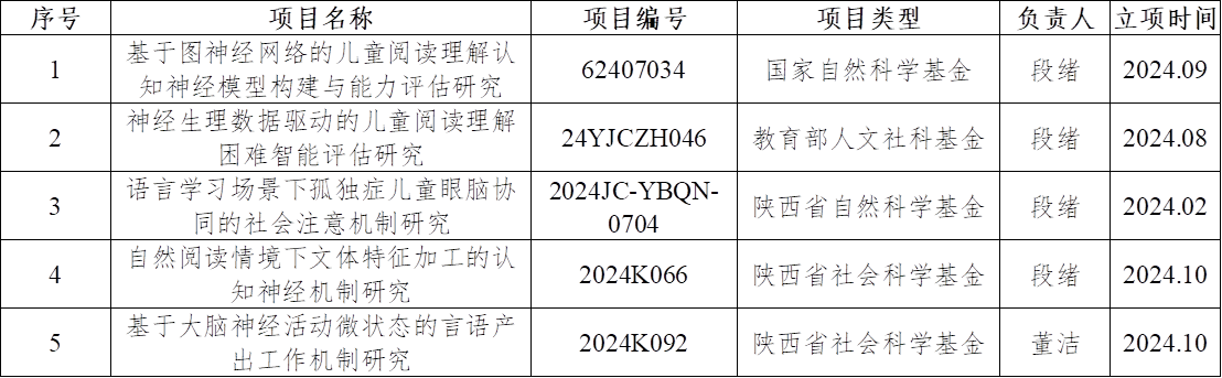 研究团队在言语想象脑机接口和语言脑科学领域取得突破,成功获批了国家自然科学基金、教育部人文社科基金、陕西省自然科学基金、陕西省社会科学基金项目5项。