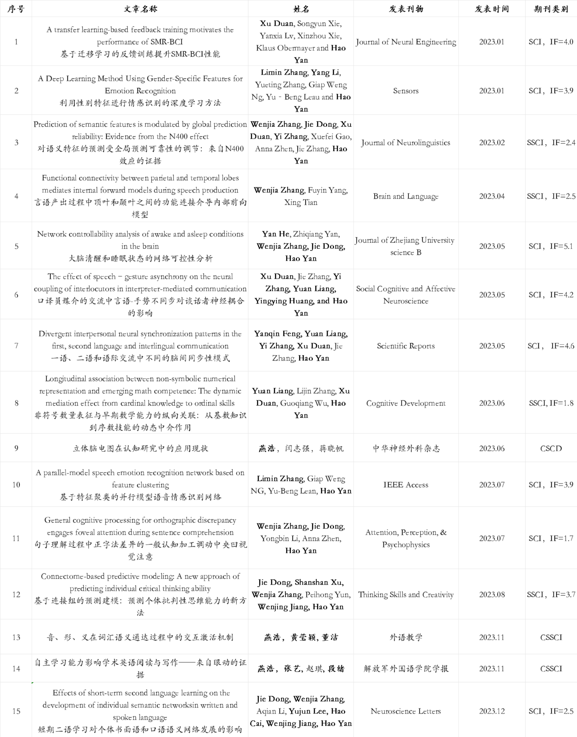 团队成员在语言科学、脑信息学、自然语言处理领域重要期刊发表学术论文15篇。