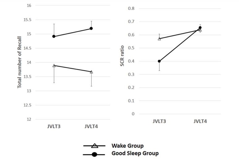 图3. 从图中可以看出,清醒组与睡眠组回忆单词的比率出现了明显的差别,体现了良好的睡眠对记忆整合有着不可或缺的积极作用。