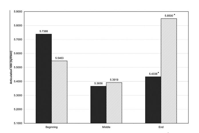 图1 语音的开头,中间和结尾的发音速度(音节/秒)的交互作用