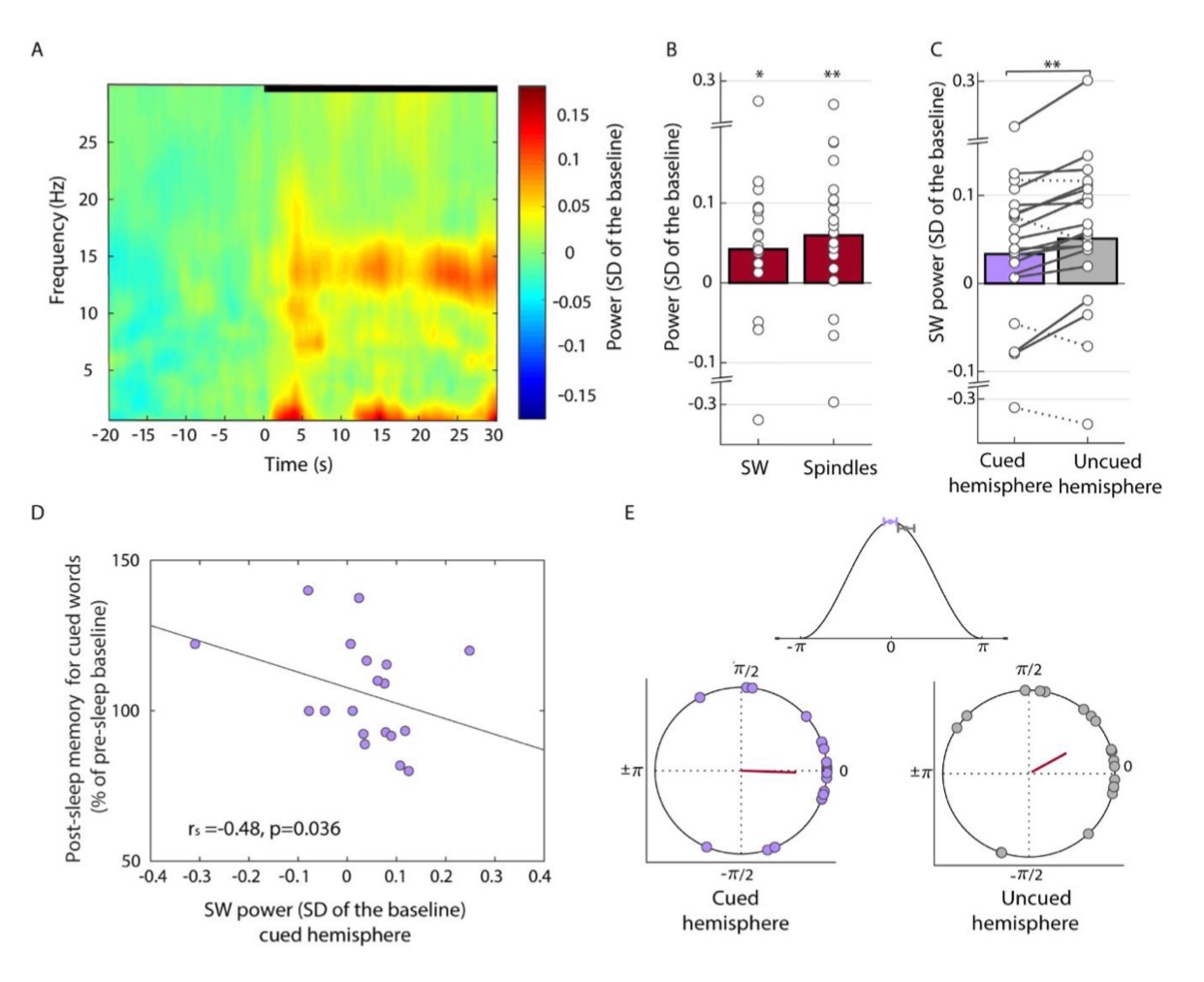 图3. 睡眠中单侧气味提示的脑电活动结果反馈