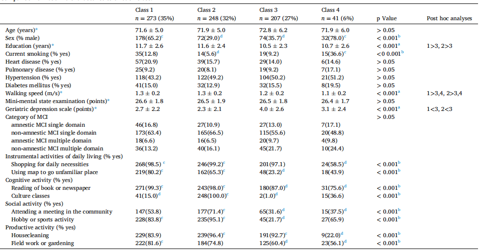 纵向研究表明,MCI作为作为智退症的前期阶段,具有重要的临床意义,MCI患者可向NC逆转,恢复正常认知功能(Normal cognition, NC)。已证实的关于MCI向NC功能逆转的相关因素包括记忆、视觉空间认知功能、神经心理功能、个性和生活方式等。随机对照试验表明,同时干预这些可变的风险因素能预防智退症。本研究使用生命周期评价(Latent class analysis, LCA)考察与MCI转归为AD,或逆转为NC的个人活动模式。