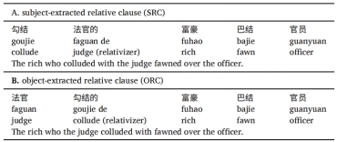 表1. 汉语宾语关系从句与主语关系从句