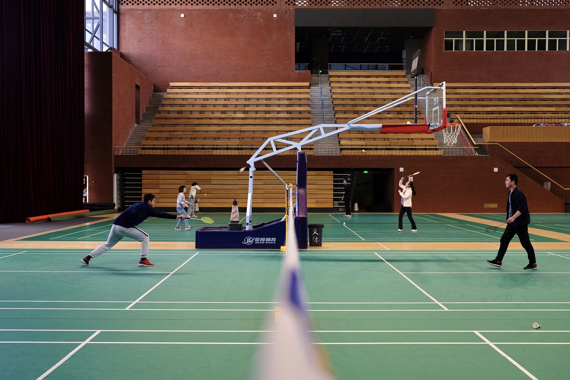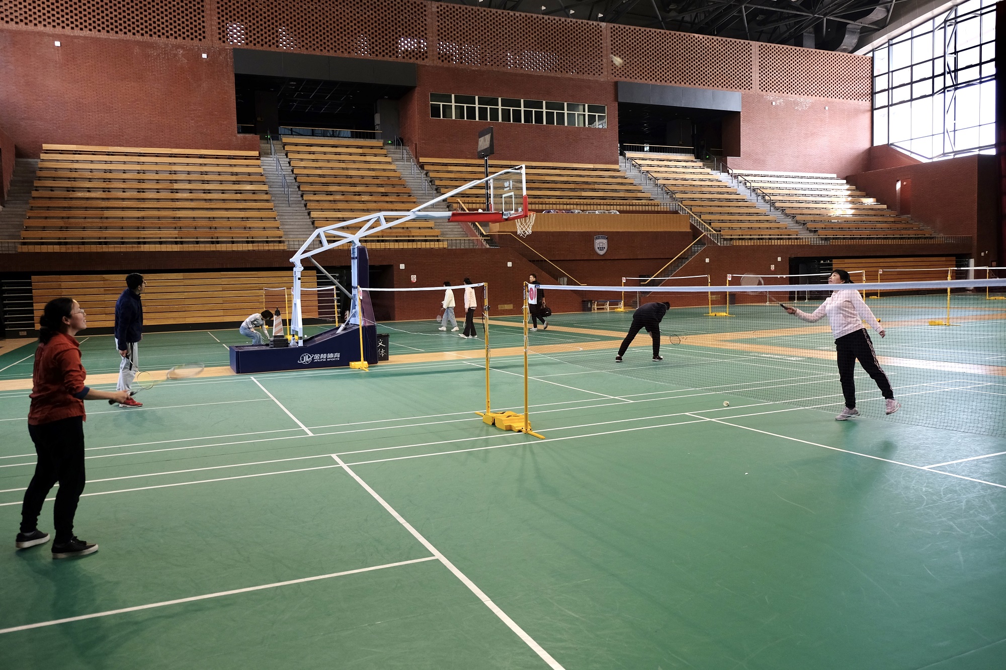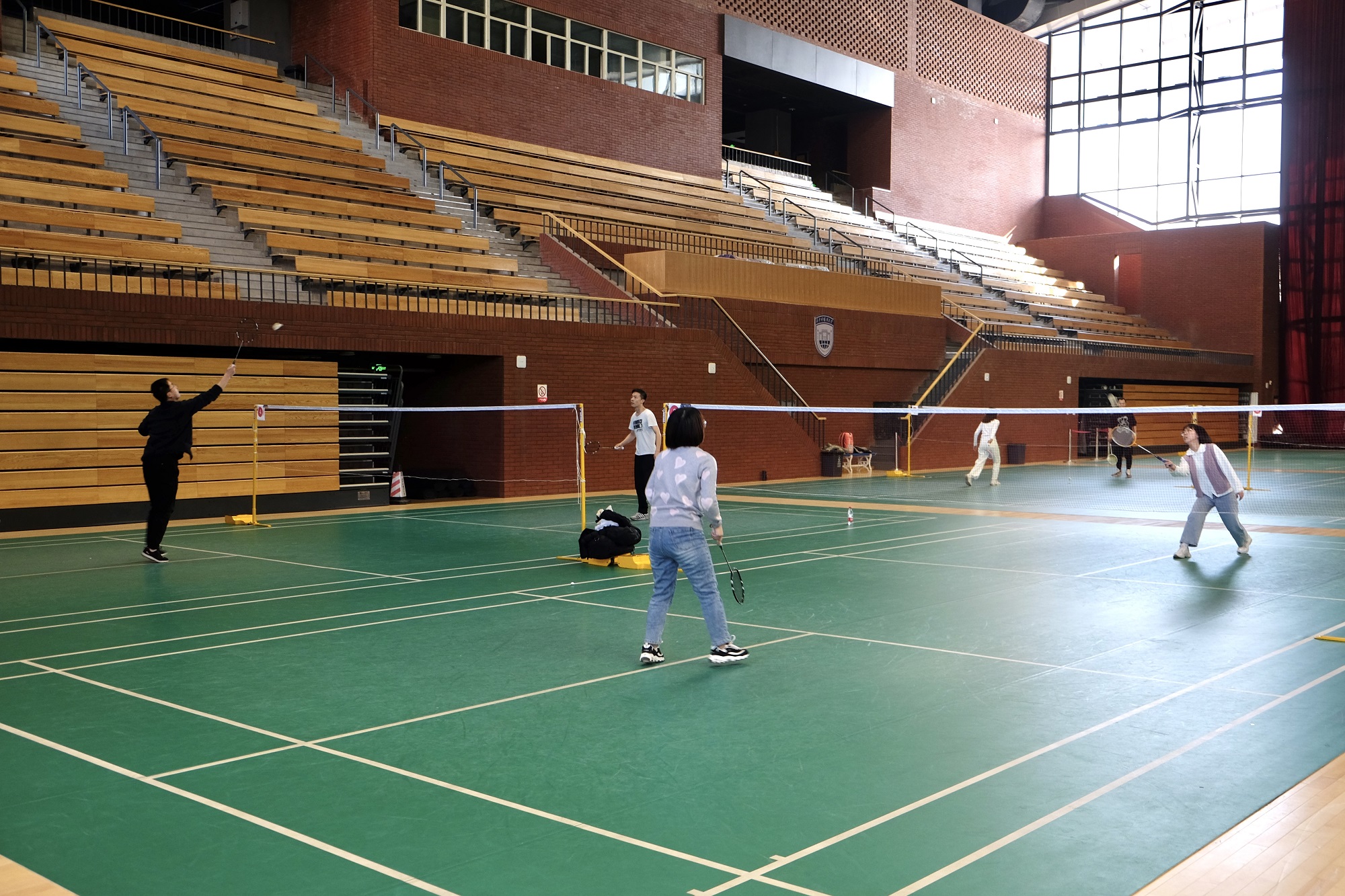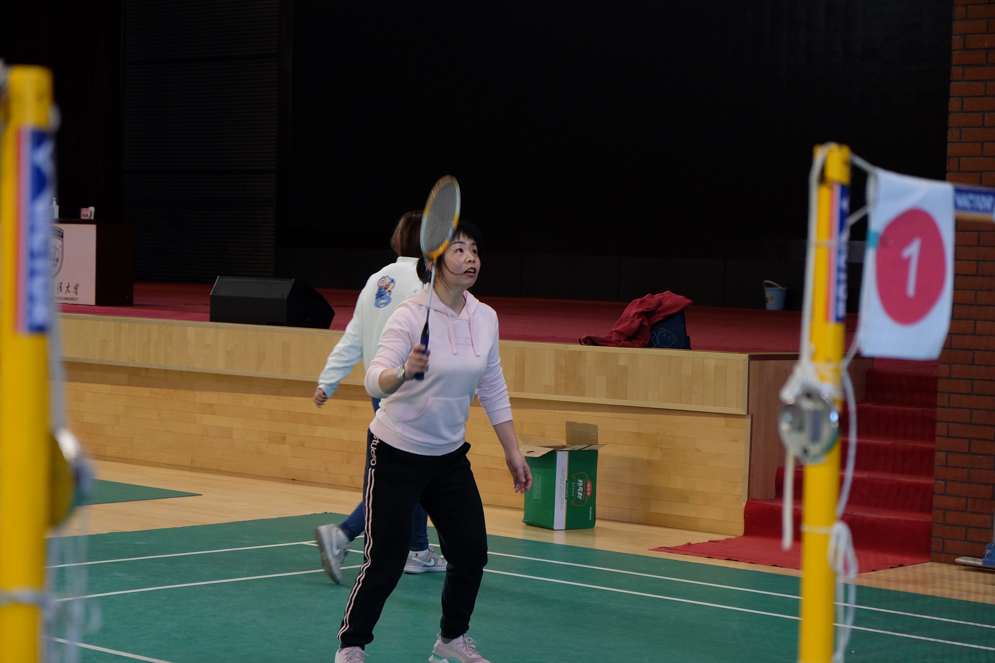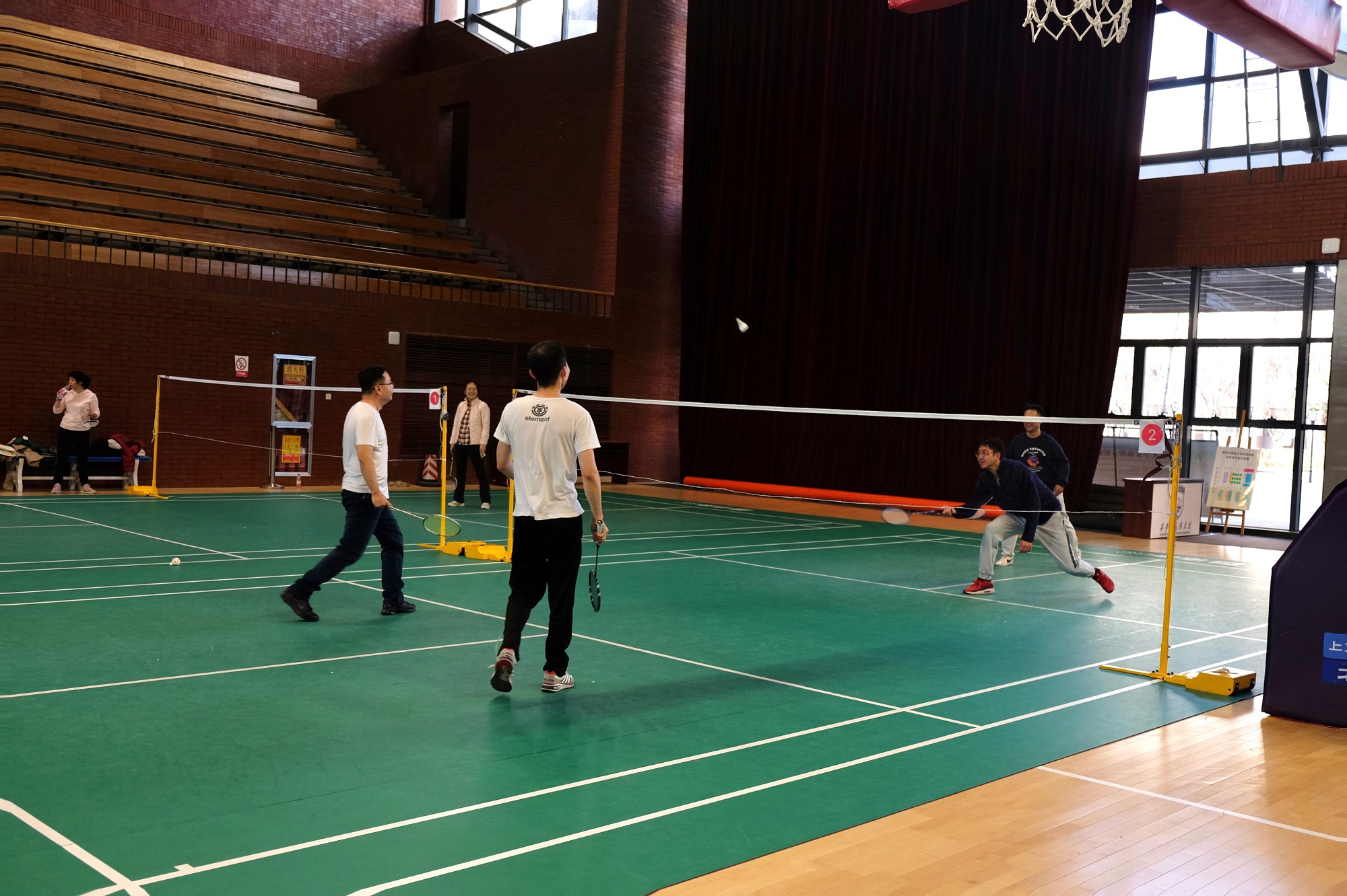 文体馆组织了一场热闹而又不失趣味的羽毛球友谊赛。
