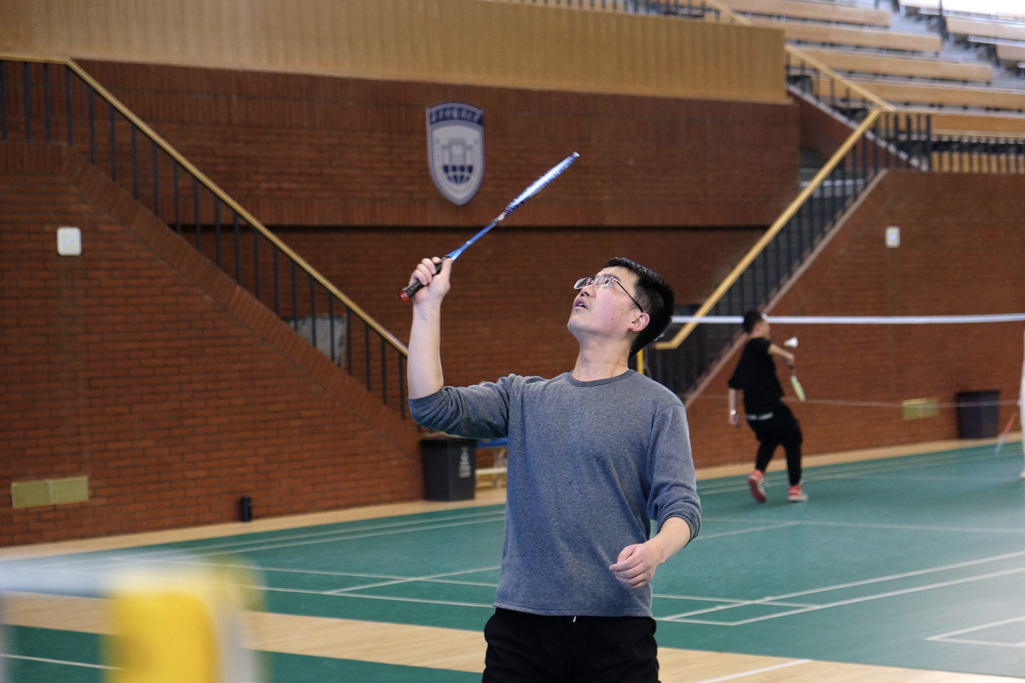 老师们在热身运动后,自由组合。球场上,翻飞的白色羽毛球时而高远的飞向底线,时而轻巧的低飞过网。老师们精神饱满、动作娴熟,灵活运用各种战术,弓身向前、网前搏斗、跃起扣杀。半场过后,已经挥汗如雨,大家尽情释放着自己的运动热情。