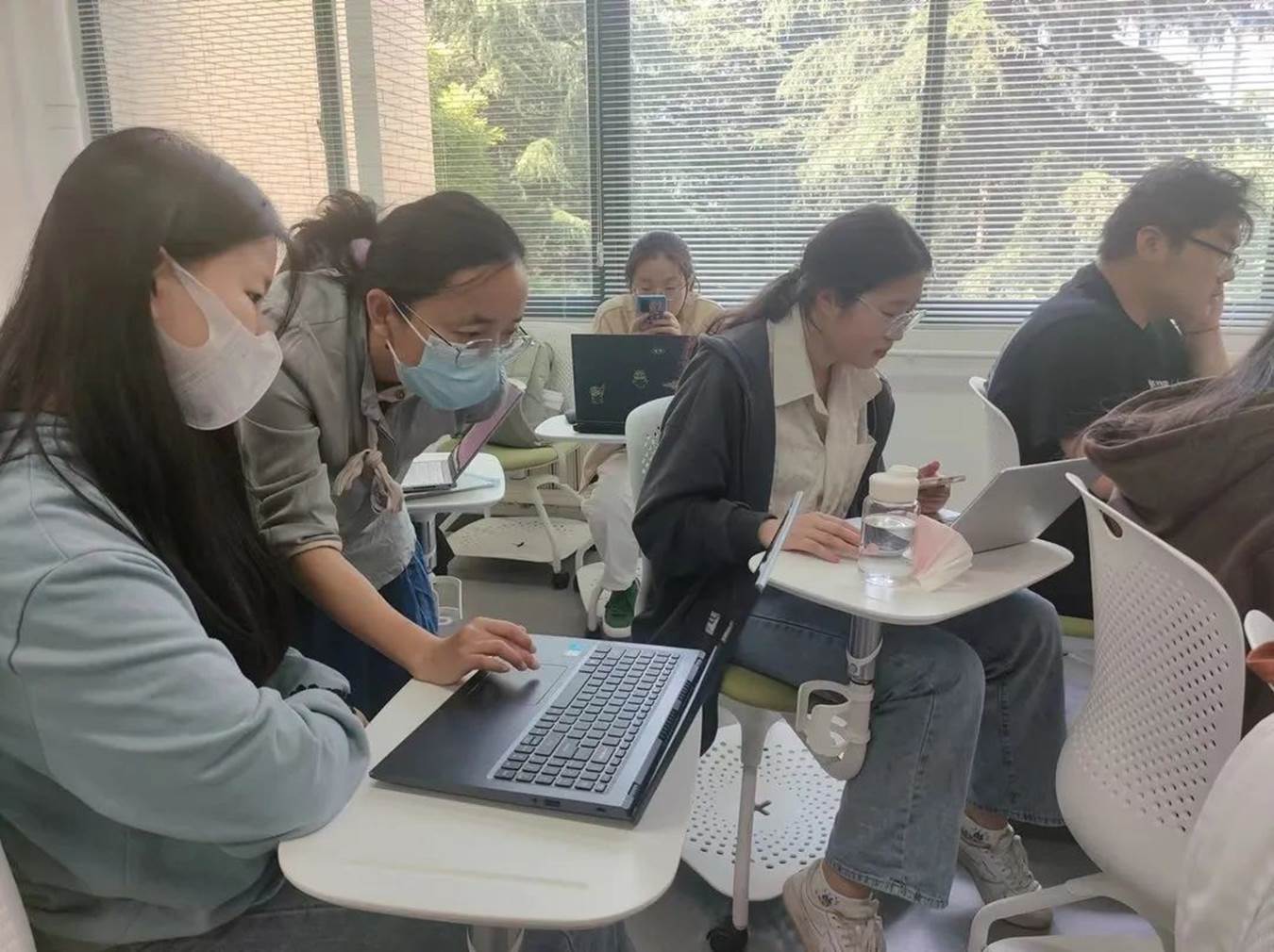 老师们讲解原理,帮学生安装软件,指导学生动手作业。